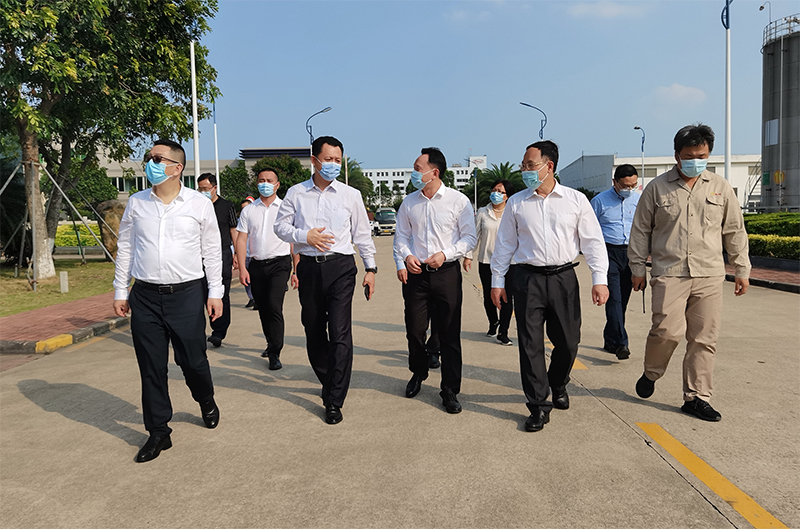 2022年4月14日,珠海市人大常委會主任潘江、秘書長陳家平、副秘書長李冬鵬、市財經工委主任高松和市工業和信息化局有關領導、珠海市金灣區副區長黃能強、珠海市斗門區人大常委會黨組書記主任吳文萊、黨組成員副主任王進、黨組成員辦公室主任李穎、金灣區科工信局主要負責同志等一行赴珠海怡達化學有限公司進行生產經營情況調研指導。